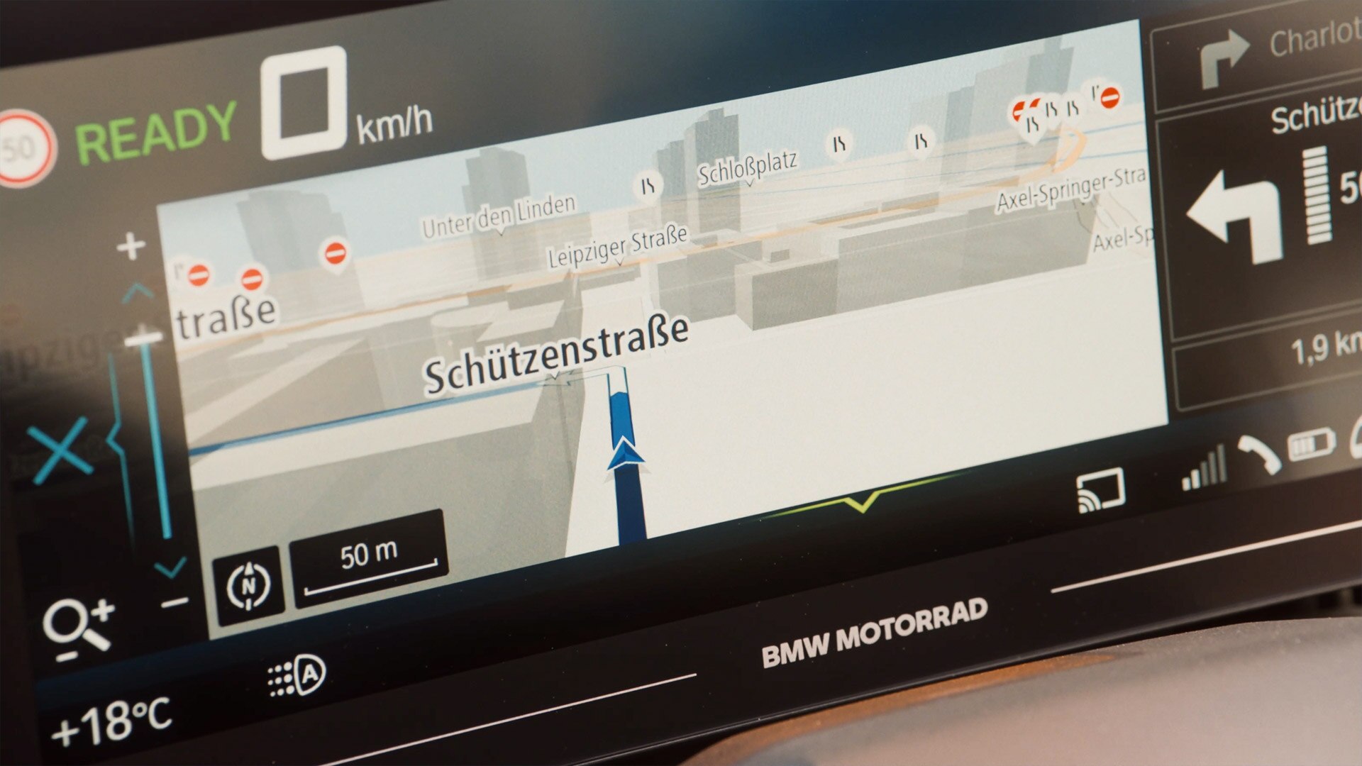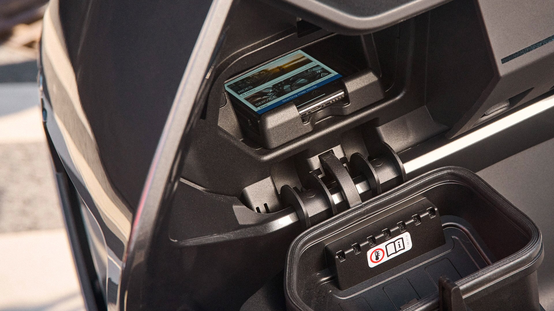 No pases nada por alto, no te pierdas nada y disfruta de todo. Gracias al sistema BMW Motorrad Connectivity y la BMW Motorrad Connected App, la BMW CE 04 se conecta de forma impecable. La pantalla TFT de 10,25" con opción de pantalla dividida es la interfaz que une la realidad digital con la analógica. Ya se trate de los datos de potencia, la autonomía, el tiempo de carga, o tu lista de reproducción favorita, el próximo destino o una conversación telefónica: la movilidad y la comunicación se fusionan. Exactamente igual que tu día a día. Además, el móvil se guarda en el compartimento ventilado e impermeable, y se carga gracias a la conexión USB-C.